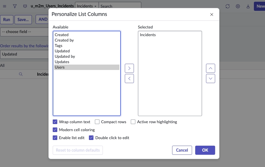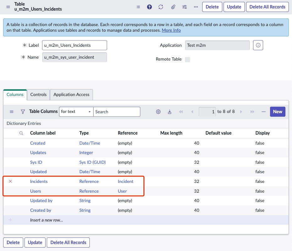 A more subtle one: if you check the dictionary for your m2m table, the Users field is there, but you don’t see the red X on the left to remove it.